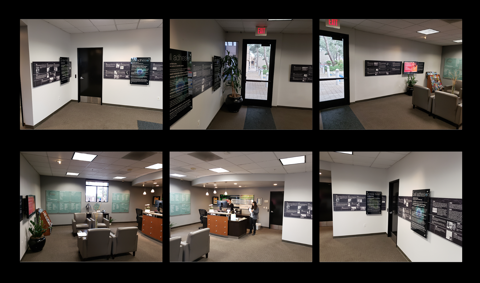 The timeline exhibit in the main reception area of Building 1 is outdated
